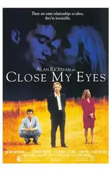 Close My Eyes is a 1991 film written and directed by Stephen Poliakoff and starring Alan Rickman, Clive Owen and Saskia Reeves as well as Lesley Sharp and Karl Johnson. Music was by Michael Gibbs and the film was produced for Beambright and FilmFour International by Therese Pickard. It had a limited theatrical release from 6 September 1991,[3] before being shown in Channel 4's Film on Four strand on 28 October 1993.[4]