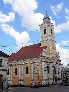The Evangelical Church is a place of worship for the Evangelical Lutheran Church in Cluj-Napoca, Romania. It was built between 1816 and 1829, following plans drawn by the architect Georg Winkler. The church is 33.8 m in length and 18 m in width, with a 43 m tower, marked with the inscription PIETATI. The sanctuary was decorated by Johann Gentiluomo, and, in 1913, the church received a pipe organ, build in Ludwigsburg.