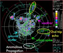 Clutter[1][2] is a term used for unwanted echoes in electronic systems, particularly in reference to radars. Such echoes are typically returned from ground, sea, rain, animals/insects, chaff and atmospheric turbulences, and can cause serious performance issues with radar systems.