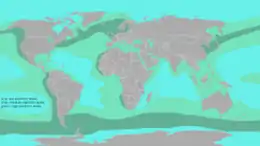 Coastal fish are the most abundant in the world.[2] They can be found in tidal pools, fjords and estuaries, near sandy shores and rocky coastlines, around coral reefs and on or above the continental shelf. Coastal fish include forage fish and the predator fish that feed on them. Forage fish thrive in inshore waters where high productivity results from upwelling and shoreline run off of nutrients. Some are partial residents that spawn in streams, estuaries and bays, but most complete their life cycles in the zone.[2]