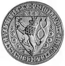 Sigillum civivm Glacensis civitatis. Great seal of the City of Kłodzko depicts Bohemian double-tailed lion (13th century)