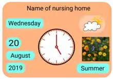 The aim of cognition-oriented treatments, which include reality orientation and cognitive retraining is the restoration of cognitive deficits. Reality orientation consists in the presentation of information about time, place or person in order to ease the understanding of the person about its surroundings and his place in them, for example using an orientation board. On the other hand, cognitive retraining tries to improve impaired capacities by exercitation of mental abilities. Both have shown some efficacy improving cognitive capacities,[20][21] although in some works these effects were transient and negative effects, such as frustration, have also been reported.[10] Most of the programs inside this approach are fully or partially computerized and others are fully paper based such as the Cognitive Retention Therapy method.[22][23]