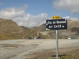 Col du Granon (el. 2,413 m or 7,917 ft) is a high mountain pass in the Alps in the department of Hautes-Alpes in France. A narrow tarmac road winds steeply up the southern approach. Gravel roads continue beyond the pass, in a military training zone. It hosted the highest ever mountain-top stage finish in the Tour de France—once only—in 1986, until the 2011 Tour de France, that had a finish in the Col du Galibier, at 2,645 m (8,678 ft) of altitude. Eduardo Chozas of Spain won the stage after a long lone breakaway.