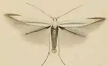 The moth was first described in 1849 by Phillpp Zeller from a specimen found on oak at Frankfurt on Main, Germany. Four years later the species was mentioned by Henry Stainton as a moth to look for in Britain. Shortly afterwards he found a larval pistol case on birch and called it, firstly C. ibipennella Heyden, and later C. ibipennella Zeller. Stainton believed they were the same species (i.e. conspecific) as Zeller’s oak-feeding moth. In 1861 John Scott realised they were separate species and re-named the oak-feeding moth C. ardeaepennella. This left the birch-feeding specimen as C. ibipennella. Maximilian Wocke introduced the name C. betulella, in 1877 for the birch-feeding species. English authors continued to use the name C. ibipennella, but as C. ibipennella Stainton to distinguish it from C. ibipennella Zeller. Following protests by entomologists, Edward Meyrick in 1928 and Kloet and Hincks in 1945, they correctly referred to the birch-feeding species as C. betulella. Unfortunately incorrect British nomenclature continued to be followed by Ian Heslop and Kloet and Hincks in 1961 and 1972 respectively and by subsequent recorders.[2]