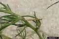 The larvae feed on the foliage of Salsola australis. The larvae are casebearers and make their cases from hollowed-out Salsola leaves. The larvae have five instars. During the first two instars, larvae are leaf miners, and in the last three they become casebearers. The larvae move from one leaf or even one plant to another. The larvae feed by attaching the case to a leaf, feeding through the epidermis at the point of attachment, and then hollowing out the leaf.