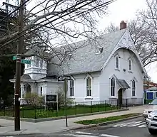 • First Reformed Church – A church built in 1872 in the small town New England style. The church is on a large lot, has a bell tower, and is adorned with "gingerbread" trim. On June 6, 2008 a fire caused damage in the steeple, which was repaired, maintaining the historical appearance of the building. (Up on 119th Street) In 2018 it was listed on the National Register.[69]