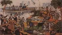 A first wave of independence movements started with the American Revolutionary War (1775–1783), initiating a new phase for the British Empire.[28] The Spanish Empire largely collapsed in the Americas with the Latin American wars of independence (c. 1808 onwards). However, empire-builders established several new colonies after this time, including in the German colonial empire and the Belgian colonial empire. In the late-19th century, many European powers became involved in the Scramble for Africa.[29]