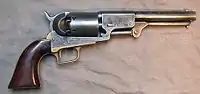 Other variants included the Colt "1848 Pocket Pistol" now known as the Baby Dragoon, marketed in California with success during the Gold rush days. With the addition of a loading lever this evolved into the 1849 pocket revolver (see Colt Pocket Percussion Revolvers).[1]