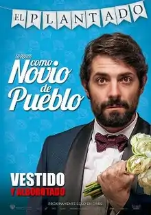 Como novio de pueblo (lit. '"Like a small town groom"') is a 2019 Mexican comedy film directed by Joe Rendón.[1] The film premiered on 15 March 2019,[2] starred by José María de Tavira opposite Regina Blandón, with Martín Altomaro, and Ricardo Polanco in supporting roles . The plot revolves around Diego, who after being stood up on his wedding day is shattered and goes from living the best day of his life to having the worst moment of his existence.[1] His cousins do not allow Diego to fall and take him to the beach to forget and have fun. it's an adaptation of the Spanish film Cousinhood by Daniel Sánchez Arévalo.[1]