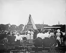 As the date for the cornerstone-laying ceremony approached, more than 10,000 people were expected to attend the event.[114][115] Plans for the cornerstone ceremony appeared to be disrupted when the 1912 presidential election was held just a week before the event and Taft lost the election to Woodrow Wilson. It was widely expected that Taft would cancel his speech, but Taft reaffirmed his commitment to speak at the cornerstone-laying event. It was considered an important speech, since it was his first speaking engagement since losing the election.[115]