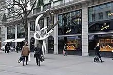 The Sprüngli café on Paradeplatz is a traditional meeting-place of the elderly ladies of Zürich's upper class. Local folklore has it that young men who attend the café alone may signal their availability to these well-to-do women by turning over their coffee spoons in their cups. But according to the company's director, this is a persistent myth reflecting Zürich's more puritanical past, when the Sprüngli café was one of the few places where upper-class women could talk to strangers without risking their reputation.[6] In 2017, Sprüngli opened an outlet in the Galleria Mall on Al Maryah Island in Abu Dhabi.