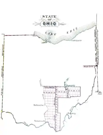 The first north-south line, Eastern Ohio Meridian, was to be the western boundary of Pennsylvania, sometimes called Ellicott‘s Line[2] after Andrew Ellicott, who had been in charge of surveying it, and the first east-west line (called the Geographer’s Line or Base Line) was to begin where the Pennsylvania boundary touched the north bank of the Ohio River, the Beginning Point of the U.S. Public Land Survey40°38′33″N 80°31′10″W. The Geographer’s Line was to extend westward through “the whole territory” which at that time was meant to include lands lying between the Ohio River and Lake Erie.