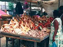 Photo of a vendor in Tanzania in 2000 selling to tourists threatened species seashells which have been taken alive from the sea, killing the animal inside.