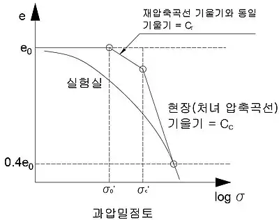 The soil which had its load removed is considered to be "overconsolidated". This is the case for soils that have previously had glaciers on them. The highest stress that it has been subjected to is termed the "preconsolidation stress". The "over-consolidation ratio" (OCR) is defined as the highest stress experienced divided by the current stress. A soil that is currently experiencing its highest stress is said to be "normally consolidated" and has an OCR of one. A soil could be considered "underconsolidated" or "unconsolidated" immediately after a new load is applied but before the excess pore water pressure has dissipated. Occasionally, soil strata form by natural deposition in rivers and seas may exist in an exceptionally low density that is impossible to achieve in an oedometer; this process is known as "intrinsic consolidation".[4]