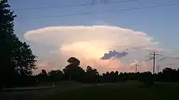 All thunderstorms, regardless of type, go through three stages: the developing stage, the mature stage, and the dissipation stage.[13][14] The average thunderstorm has a 24 km (15 mi) diameter. Depending on the conditions present in the atmosphere, each of these three stages take an average of 30 minutes.[15]
