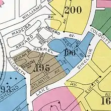 In 1888, the Copenhill Land Company was incorporated with Oscar Davis as president and Charles A. Davis as secretary and treasurer; Lodewick Johnson Hill was one of the three owners.[3] The company laid out the city's second "garden suburb" (after Inman Park). The centerpiece was Madeira Park, which like Springvale Park in Inman Park, was created out of a natural ravine near the center of the development. Intersections of the curving streets were often defined by small circular or triangular parks similar to those found in Ansley Park today. Other open spaces were also included in the original design, most notably the small lake near the intersection of Layal (now Colquitt) Avenue and Highland Avenue, which was fed by a small branch that formed part of the headquarters of Clear Creek. The Copenhill developers cooperated with the Inman Park developers to insure both developments were finished to the greatest advantage of one another.[4]