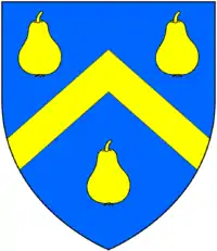 | Calmady |  | Azure, a chevron between three pears or | • Stoke Climsland |