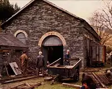 Other than at Aberllefenni and Braichgoch quarries, no rails remained in situ along the Corris route. Initially the Society sought to purchase Machynlleth station for its museum, but when this proved impossible it turned its sights elsewhere. The main buildings of Corris station were demolished in 1968 leaving only the adjacent railway stable block standing, and these buildings - badly in need of maintenance - were acquired, along with a short section of trackbed leading southwards. In 1970 the first part of the building was opened as the Corris Railway Museum. A short length of "demonstration" track was laid in 1971.