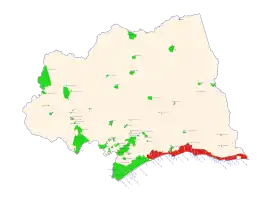 Costa de Oro is a 45 kilometres (28 mi) long group of resort towns and beaches in Canelones Department, Uruguay, east of the Ciudad de la Costa.[1][2] Until 19 October 1994 it also included all the resorts that became henceforth integrated under the name Ciudad de la Costa. Since then, Costa de Oro contains only the resorts and locations of the area delimited by the streams Arroyo Pando to the west and Arroyo Solís Grande to the east and by the highways Ruta 8 and Ruta 9 to the north.