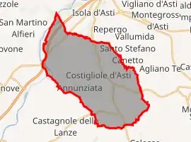 Costigliole d'Asti (Piedmontese: Costiòle d'Ast) is a small Italian town in the Province of Asti, southern Piedmont. It lies about 13 kilometres (8 miles) south of the city of Asti in the Alto Monferrato, on the edge of the Langhe, in the alluvial plain of the river Tanaro southwards into the hills. The name derives from the Latin Corte Costeliolae.