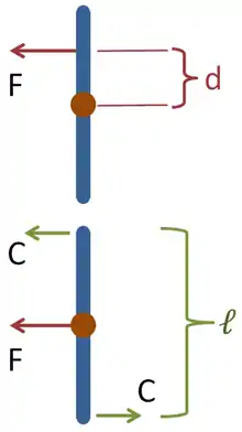 If the two forces are F and −F, then the magnitude of the torque is given by the following formula:
