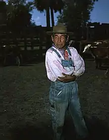 In the United States and Canada, the term "cowman" is used, but is less common than other terms such as "rancher," "cattleman," "stockgrower" or, in some cases, "cowboy." It is generally defined as an individual who owns cattle.[2] The more common term for a person who owns and works with dairy cattle usually is dairy farmer, while a person with beef cattle is a cattle rancher. Being farmers and ranchers, American cattlemen are generally landowners, though on occasion the terms may include foremen or managers of particularly large operations. The employees of a ranch who work with the livestock may be called cowboys, wranglers, sheepherders, or simply "ranch hands." However, the term "cowman" is occasionally used as a synonym for cowboy.[3]