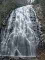 Crabtree Falls is a 70 ft. cascade on Big Crabtree Creek. The creek spreads over a rock face with many small ledges, giving it a delicate appearance, before trickling into a clear pool at the base. Though there are hardly any crabtrees here now, in the spring, an impressive array of wildflowers abound on the trail, including four species of trillium.[1] By July, ferns fill the forest and soak in the spray of the falls, with rosebay rhododendron in bloom.
