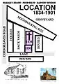 Situation of buildings in the 19th century showing the original 1834 building and the 1850 extension.