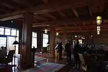 In the spring of 1989, just before the lodge was to open for its summer season, structural engineers advised the National Park Service that the Great Hall was unsafe. It was so unstable they feared it might collapse from its own weight, bringing down the rest of the lodge with it. This forced the National Park Service to close the lodge pending renovation. After two years of planning, construction began in 1991. Some original materials were salvaged for reuse, but most of the original building had deteriorated to the point it could not be saved or reused. However, the Great Hall was carefully dismantled. The rest of the building was gutted and a steel support structure, modern utilities and fire suppression system were installed, and guest rooms were upgraded to modern hotel standards. The renovation was completed in the fall of 1994 at a cost of $15 million (equivalent to $27 million in 2021). On May 20, 1995, Crater Lake Lodge reopened to the public.[7] It was operated by Xanterra Parks and Resorts (formerly Amfac Resorts) from 2002–2018.[10] Aramark took over operations in 2018.[11]