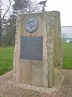 On 4 July 2007, the 63rd anniversary of Captain John Pershing Perrin's death, a monolithic stone memorial was erected at the crash site to commemorate the pilot's supreme act of heroism.[7][8] A joint Anglo-American dedication service was held that day with representatives of the Perrin family, the U.S. Air Force, the Assistant Air Attaché from the American Embassy, Creswell Parish Council, Vice Lord Lieutenant of Staffordshire and Mayor of Stafford in attendance. A bugler from the U.S. Air Forces in Europe Band performed Taps and other musical arrangements were performed by RAF Cosford Voluntary Band. The ceremony concluded with a flypast and aerobatic display by a lone 1944 vintage P-51D Mustang.[9]