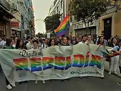 Critical pride (in Spanish, Orgullo crítico) is the name of several annual protest demonstrations of LGBT people held in Madrid and several other Spanish cities. The organizers of critical pride demonstrations present them as an alternative to the original pride parades and festivals, which they consider depoliticized and institutionalized.[1][2][3][4][5][6]