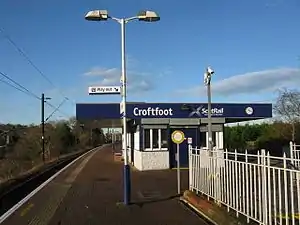 Croftfoot railway station is a railway station in South Lanarkshire that lies close to the City of Glasgow / South Lanarkshire boundary serving the Croftfoot area of the City of Glasgow and the Spittal and Bankhead areas of the town of Rutherglen, Scotland. The station is managed by ScotRail and is on the Newton branch of the Cathcart Circle Line.