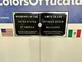 Plaque at the CBX passenger bridge corridor indicating the Mexico–United States border.