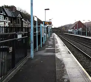 Crosskeys railway station is a station serving the village of Crosskeys in the Caerphilly County Borough in Wales. It is on the Ebbw Valley Railway.
