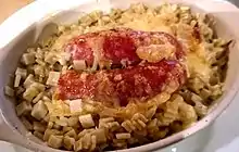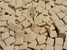 Crozets de Savoie are small, square-shaped, flat pasta originally made in the Savoie region in southeast France. Crozets were made traditionally at home by housewives using buckwheat or wheat, or sometimes both. This pasta is used mainly to prepare two regional dishes, the croziflette (a variant of tartiflette) and crozets with diots.[1][2]
