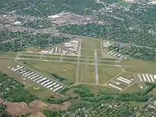 Crystal Airport (IATA: MIC, ICAO: KMIC, FAA LID: MIC) is a public airport named after the city of Crystal in Hennepin County, Minnesota, United States. Most of the airport is in the city of Crystal. Portions north of taxiway C (62nd Avenue) are in Brooklyn Park, and the north east corner of the airport is in Brooklyn Center. It is eight miles (13 km) northwest of the central business district of Minneapolis and is owned by the Metropolitan Airports Commission.[1] The airport covers an area of approximately 430 acres.[2]