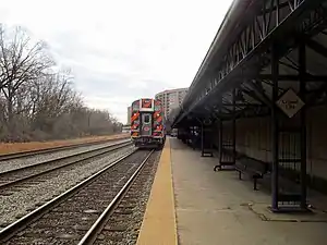 The station has a single side platform located on the west side of the three tracks of the RF&P Subdivision.[2] Crystal City station, used by 18% of VRE riders in 2017, represents an "operational bottleneck" for VRE: the single 400-foot (120 m)-long platform is shorter than 700-foot (210 m) trains and forces all trains to use one track.[3][4]