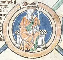 Asser presents Alfred as saintly, however Alfred was never canonised (in 1441 Henry VI of England attempted unsuccessfully to have him canonized by Pope Eugene IV), so in later catholic medieval England artists turned to the royal Anglo-Saxon saints such as Saint Edmund the Martyr and Saint Edward the Confessor, for inspiration as subjects. (Though venerated at times in the Catholic Church, the current "Roman Martyrology" does not mention Alfred.)[2][3] While he was not venerated in art, the medieval historians William of Malmesbury, Matthew Paris and Geoffrey of Monmouth further reinforced Alfred's favourable image of a pious Christian ruler.[1]