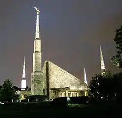 The city is also home to a sizable LDS community. The Church of Jesus Christ of Latter-day Saints has fifteen stakes throughout Dallas and surrounding suburbs.[6] The Church built the Dallas Texas Temple, the first temple in Texas, in the city in 1984.[7]