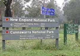 Cunnawarra is a national park located in New South Wales, Australia, 80 kilometres (50 mi) east of Armidale, 10 kilometres (6.2 mi) off the Waterfall Way and 565 kilometres (351 mi) north of Sydney. The 25-kilometre (16 mi) Styx River Forest Way runs from the Point Lookout Road through Cunnawarra National Park to the Kempsey Road. The New England National Park adjoins the Cunnawarra National Park on the north-eastern boundary and the Oxley Wild Rivers National Park joins it on the southern corner.[1]