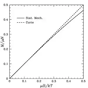 When the particles have an arbitrary spin (any number of spin states), the formula is a bit more complicated. At low magnetic fields or high temperature, the spin follows Curie's law, with[2]