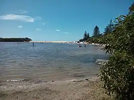 Currimundi Lake is a saltwater lake situated beside Currimundi Beach. North of the lake is the Kathleen McArthur Conservation Park. Nicklin Way, the main road between Caloundra and Maroochydore, crosses Ahern Bridge over Currimundi Lake. The Ahern Bridge was named after John Ahern, a firefighter who saved many lives and won a bravery award. Currimundi attracts many tourists in the holidays and the beach is patrolled by Surf Life Saving Australia on weekends and school holidays.[3]