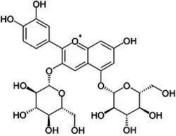 Cyanidin-3,5-O-diglucoside, also known as cyanin, is an anthocyanin. It is the 3,5-O-diglucoside of cyanidin.