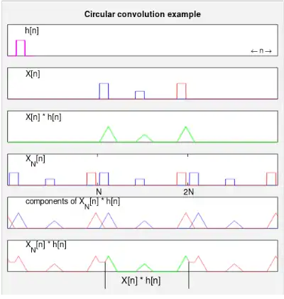 Similarly, for discrete sequences, and a parameter N, we can write a circular convolution of aperiodic functions and as: