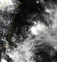 In addition to the named storms, the MFR tracked 11 tropical depressions or disturbances that did not intensify into a tropical storm. The agency did not issue any bulletins on eight of them. Of the remaining three, two formed in late December, and the other formed in mid-February. Tropical Depression B2, the longest-lasting of the depressions, formed after a month of activity. An area of convection developed in the Mozambique Channel, and the MFR believed it to be connected to the depression that formed on December 28 east of Madagascar. With a ridge to the east, the system tracked southward, but failed to intensify due to strong wind shear. While passing west of Réunion, the depression dropped heavy rainfall, totaling 350 mm (14 in) along the northern coast and about twice that amount in the mountainous interior. On December 31, the depression dissipated to the southwest of Réunion.[1] On February 10, the JTWC tracked Tropical Cyclone 12S into the basin as a weakening tropical depression, which quickly dissipated.[3][5] A few days later, the JTWC also tracked Tropical Cyclone 15S from February 14–17, which briefly intensified into a minimal tropical storm in the eastern portion of the basin.[3][6]