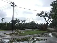 Before the storm, on 15 March, the Australian Bureau of Meteorology (BoM) issued cyclone warnings for Darwin, the Tiwi Islands, and parts of the northwest Top End.[10] Major events and flights in and out of Darwin were cancelled.[11] Approximately 26,000 homes were affected by electricity outages as a result of the destructive winds, even in areas as far south as Batchelor and Adelaide River.[12] Thousands of trees were destroyed across the Greater Darwin region including many African mahoganies planted after Cyclone Tracy for their fast growing and expansive shade qualities.[13][14]