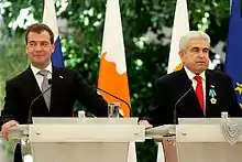 Russian President Dmitry Medvedev and Cypriot President Demetris Christofias met in Nicosia on 10 October 2010 and discussed a wide range of issues, including cooperation in the economy, finance, tourism and the humanitarian sphere. Medvedev also took part in the Cyprus-Russia Business Forum.