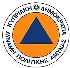 The main mission of the Cyprus Civil Defence Force (Greek: Δύναμη Πολιτικής Άμυνας Κύπρου, Turkish: Kıbrıs Sivil Savunma Kuvvetleri) is carrying out various humanitarian projects intended to protect the civilian population and to help it recover from the immediate effects of hostilities or disasters, as well as to provide the conditions necessary for its survival.[1]