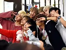 D-Crunch was among 18 vocalists from various genres that participated in a music video entitled "Crown for Korea". It was released on March 25, 2020, amidst the COVID-19 pandemic and was compared to the charity single "We Are the World". Speaking on the project, director Kwon Woo-ki expressed his intentions to "give courage to everyone living in this land that they would be crowned winners if they could keep their values and overcome this period".[48] D-Crunch also partnered with the Gangnam District to produce content for a video series aimed to lift viewers out of "corona depression" by teaching them K-pop choreography.[49] Entitled "K-pop Home Care", they provided dance instructions for Exo's "Tempo".[50] D-Crunch also joined the Sports Doctors Relay Support Campaign and sent messages of encouragement to medical workers and citizens.[51]