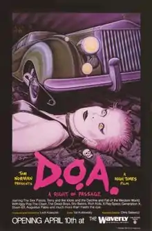 D.O.A.: A Right of Passage is a 1980 rockumentary film directed by Lech Kowalski (his premiere film as a director) about the origin of punk rock. The rockumentary takes interview and concert footage of some of punk rock's earliest bands of the late seventies scene. Features live performances by the Sex Pistols, The Dead Boys, Generation X (with Billy Idol), The Rich Kids, X-Ray Spex, and Sham 69, with additional music from The Clash, Iggy Pop, and Augustus Pablo.[1][2]